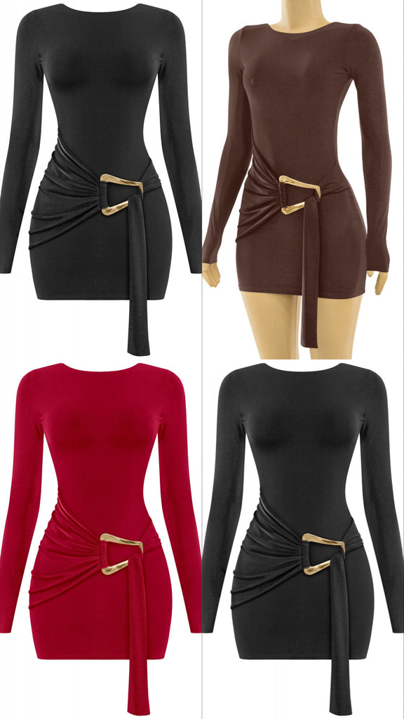 Name LONG SLEEVE DRAPE TRIM DETAIL MINI DRESS